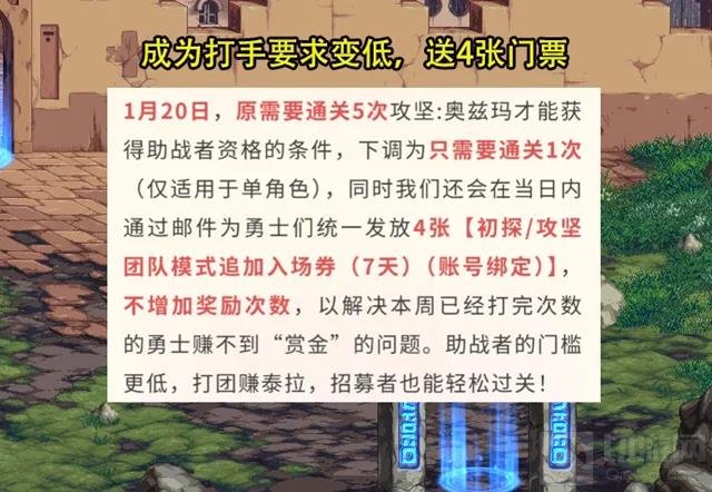 为了帮助玩家更快提升实力,策划还发放了300个锤炼之证。此外,从1.20开始,玩家只需通关1次奥兹玛团本即可成为打手,并且每次通关都会获得4张门票。这一改动不仅降低了打手的门槛,还让打手能够通过赏金团赚取更多的奖励。