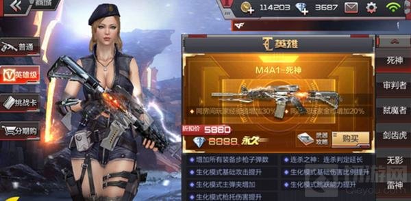 首先是M4A1-死神。死神意外地没有以新英雄礼包的形式出现,这着实是让想要入手的CFer很欣慰。