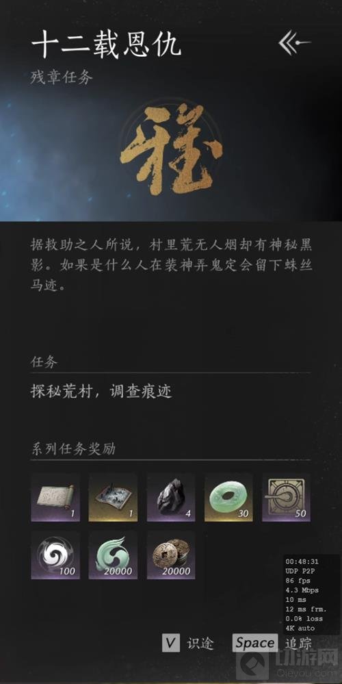 《燕云十六声》中的“卷六·十二载恩仇”是一个充满悬疑和情感纠葛的支线任务,玩家需要深入达安村,揭开隐藏在迷雾中的真相。以下是详细的攻略和剧情解读: