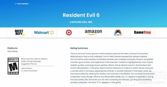 近期,国外一家娱乐软件分级网站上的一条新评级信息暗示,《生化危机6》可能即将登陆本世代主机。在该评级机构的网站搜索结果显示,Xbox Series平台的《生化危机6》评级为M级。