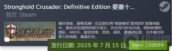 《要塞十字军东征:决定版》将于2025年7月15日正式发售。这款备受期待的游戏是经典即时战略游戏《要塞十字军东征》的扩展决定版,由FireFly Studios开发。玩家将重返中世纪的圣战之地,体验重新构想的历史战役和全新的游戏内容。