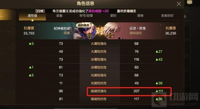 这位玩家的狂战士角色目前的伤害输出已经达到了110多亿,其暗属性强化值高达207,抗魔值更是达到了36,236,堪称巅峰水准。这一独特的打造思路不仅打破了常规,更以较低的成本实现了极高的输出效果,值得玩家们深入研究和学习。