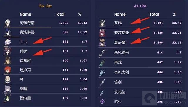 仆人的专武出货数量为638把,克洛琳德的专武出货数量为418把,整体差距并不算大。此外,本期卡池中歪到最多的角色依次是七七、莫娜、迪希雅、迪卢克和琴等,而四星角色中出货最多的则是蓝砚、罗莎莉亚和夏沃蕾。其中,新四星角色蓝砚的出货量位居榜首,这一结果令人颇感意外。