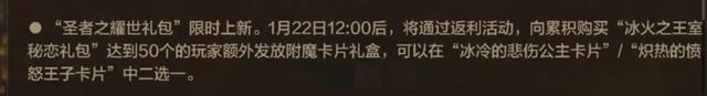 对于氪金大佬来说,还有专属获取方式。累计购买 50 个冰火之王室秘恋礼包的玩家,可以获得王子或者公主自选卡片礼盒。