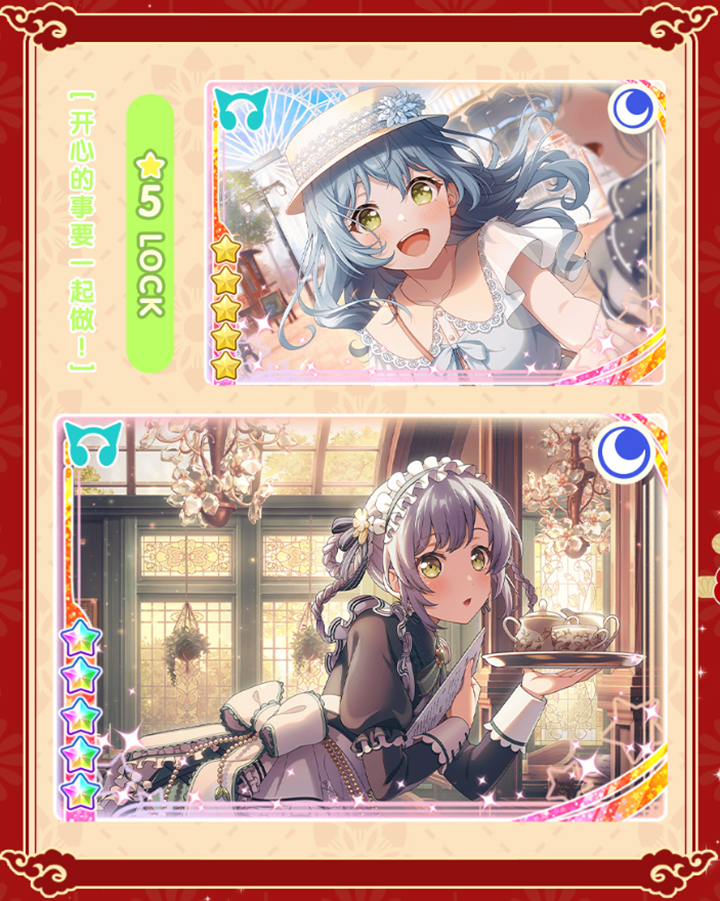 在Bang Dream 少女乐团派对的1月23日维护后,「让憧憬随海风荡漾」竞演演出活动正式上线。与此同时,还将同步开启「喜迎新春 Dream Festival招募」及春节纪念庆祝活动,并追加歌曲《ココ☆ナツ》!多重福利来袭,快登录游戏,和乐队成员们一起享受这场新春盛宴吧!