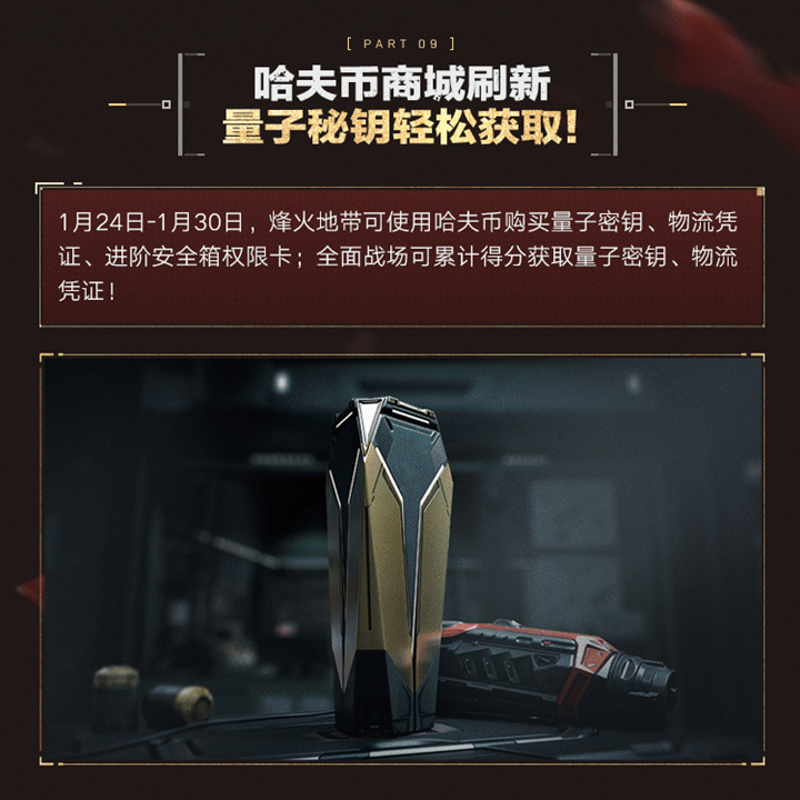 玩家使用哈夫币购买量子密钥、物流凭证、进阶安全箱权限卡等。全面战场累计得分也可获取量子密钥、物流凭证。