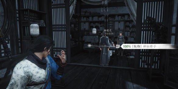 在柳徽之的房间里,玩家需要使用取物技能,从桌子上的众多物品中找到并拿到神秘册子。