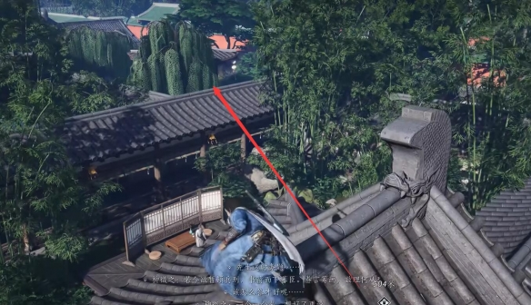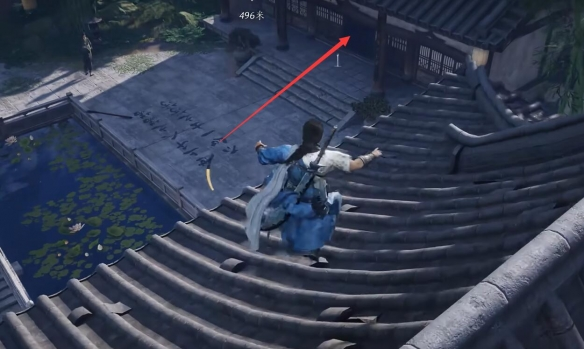 进入翰林院后,不要急于从房顶下去,而是继续往前面的房顶跳跃,来到一个特定的位置。