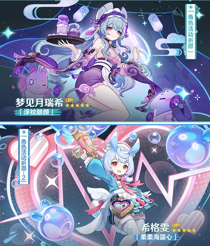 五星UP角色:梦见月瑞希、希格雯(武器卡池为两位对应的专武)