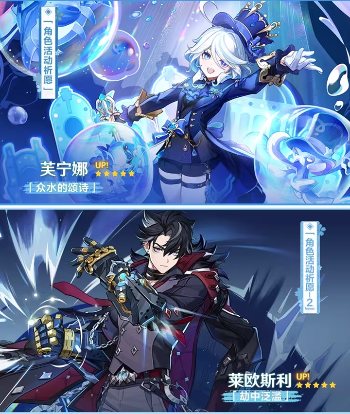 五星UP角色:芙宁娜、莱欧斯利(武器卡池为两位对应的专武)