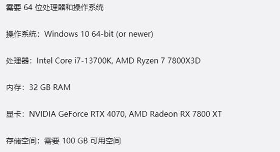 内存:32 GB RAM是推荐的最低内存配置,更高的内存可以更好地支持游戏的多任务处理和高分辨率纹理加载。