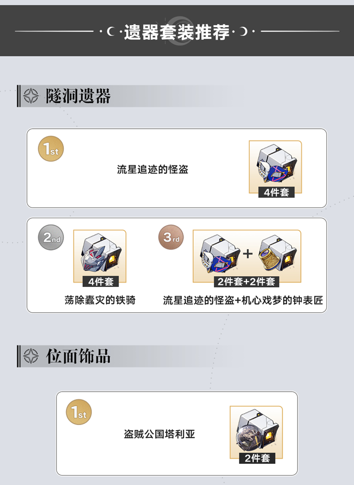 位面饰品方面,建议选择盗贼公国塔利亚,其两件套效果在速度高于145时可进一步提高击破特攻。