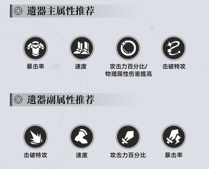 在副属性方面,优先考虑击破特攻和速度,以提高波提欧的击破效率和行动频率。其次,可关注暴击率和攻击力百分比,以增强直伤能力。