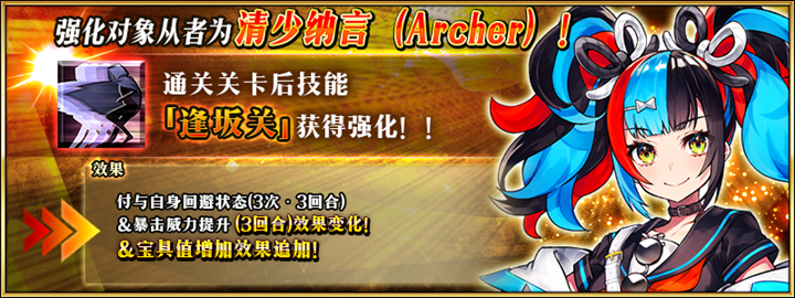 最后,强化「★5(SSR)清少纳言(Archer)」「★5(SSR)紫式部(Caster)」的特别关卡「从者强化任务」将在迦勒底之门中作为常驻关卡追加。该关卡将于2025年2月6日(周四)维护后开放,开放条件为玩家需拥有本次强化的对象从者并完成最终再临。通关关卡后不仅可以强化对象从者,还可以获得圣晶石奖励。需要注意的是,从者强化任务关卡无剧情内容,且若玩家尚未拥有对象从者,则对应的强化任务关卡不会出现。本次开放的强化任务关卡不是限时关卡,玩家可以随时挑战。