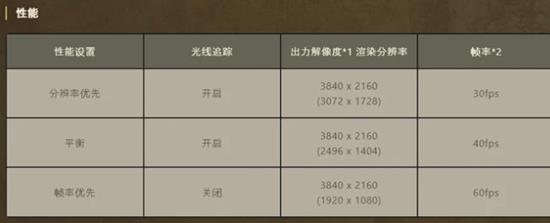 帧率优先,光线追踪关闭:输出分辨率为4K,渲染分辨率为1920×1080,帧率为60FPS。
