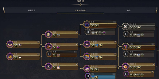 6代牢玩家需要注意的是,本代除了正常的市政,不同文明有不同文明独特的市政树,而神学也就是宗教也被单独划分了一条市政。