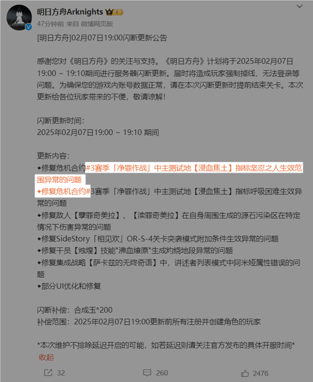 《明日方舟》在2025年2月7日进行一次重要的服务器闪断更新,旨在修复游戏中的一些问题和优化用户体验。以下是详细的更新资讯。