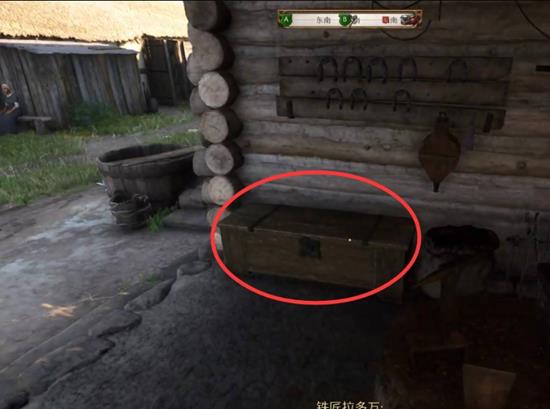 在铁匠铺的箱子里找到锻造所需的材料,然后与锻造台互动开始锻造过程。