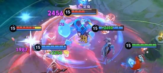 使用三技能刷新标记,对敌人造成定身效果,并为队友回复血量。