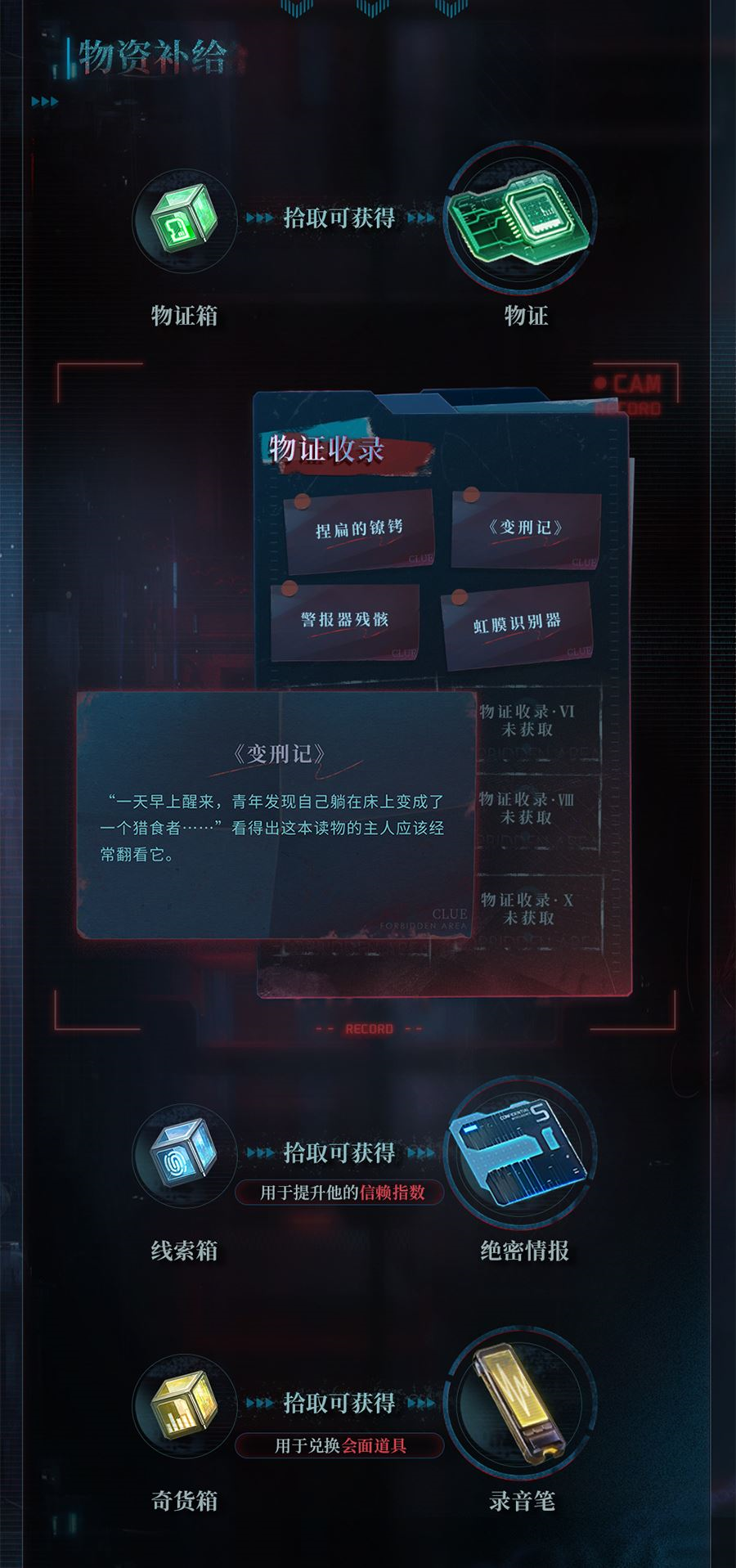 兑换商店为玩家提供了丰富的奖励,只要在活动中完成任务并收集足够的罪证板,就能兑换各类珍贵道具。玩家可以获得钻石、深空许愿券以及限定称号「即刻出击的缉查官」,同时还能解锁男主专属的动态写真动作,包括「沈星回·虚妄囚占」、「黎深·危险等待」、「祁煜·以爱为牢」、「秦彻·一级诱捕」和「夏以昼·缚心之枷」。此外,还有丰富的装扮奖励,如“我”的专属服装「旖梦心澜」、通用头饰「叉趣联盟」、通用装饰「假面扑克」等,甚至还包含大头贴背景「明日之囚」、牵绊装扮定制壁饰「心之桎梏」、背景音乐「无赦之城」以及Q版头像等多种道具。具体如下: