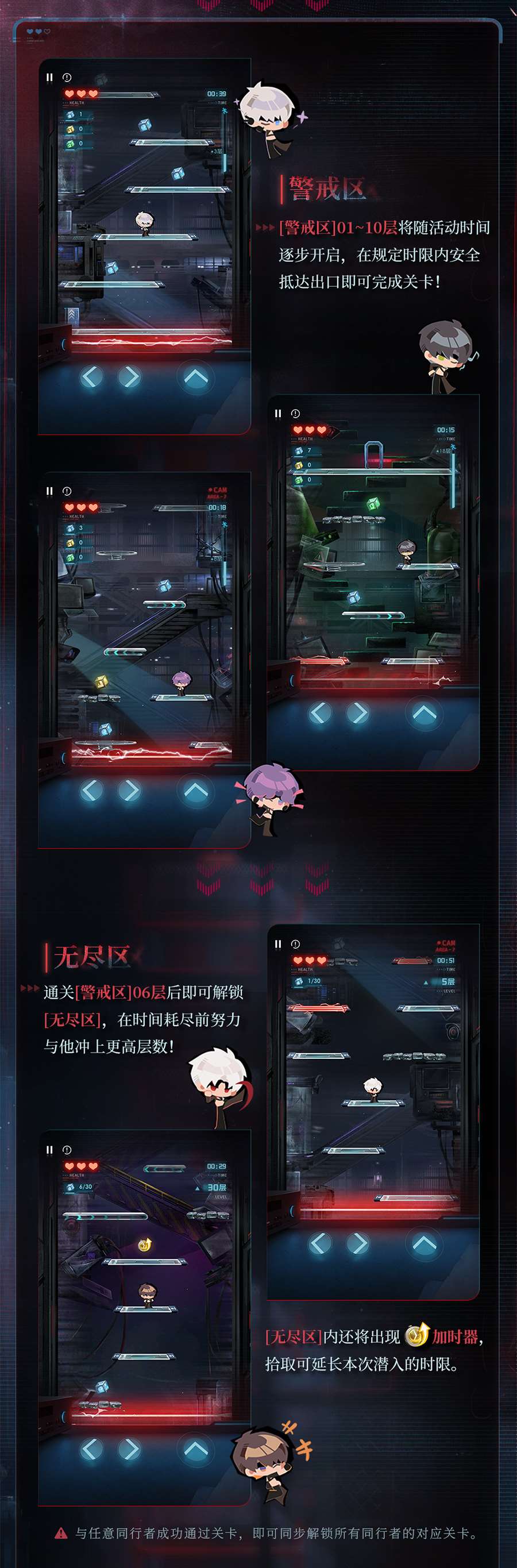 禁区潜入玩法则是一场紧张刺激的挑战。在这项任务中,玩家需要与男主协作,前往目标区域收集物资箱,并努力找到通往最高层出口的路径。在探索过程中,玩家可以利用各类道具提升成功率,同时还要警惕可能出现的突发情况。成功通关后,玩家不仅能够解锁自己的剧情进展,还可以同步解锁其他同行者的相关关卡。这一机制使得挑战过程更加高效,同时提升了团队协作的乐趣。
