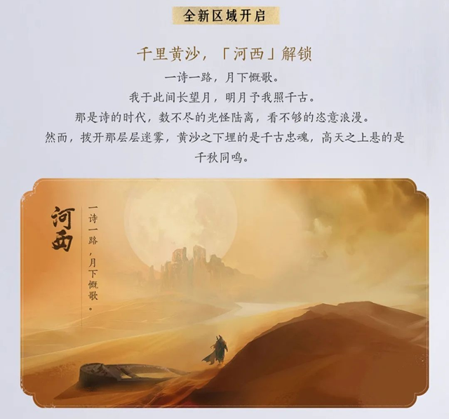 燕云江湖版图再次扩展,全新区域“河西”即将开放。在这里,玩家可以感受千里黄沙的壮阔,聆听诗人歌咏千古的绝唱。然而,在这片看似荒凉的土地下,埋藏着无数英雄的故事,等待玩家亲自揭开历史的尘封篇章。