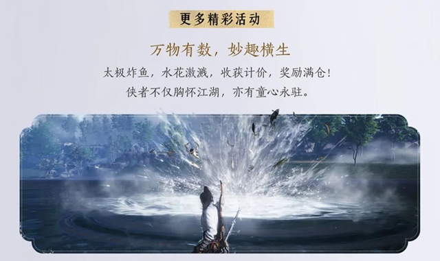 本次版本更新还带来了休闲趣味玩法“太极炸鱼”,玩家可在特定场景中激起水花并收获大量奖励。同时,官方预告了即将推出的新时装“雪满川”以及全新战令外观,具体内容将在后续更新中正式揭晓。