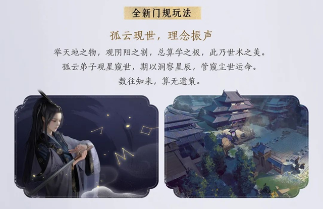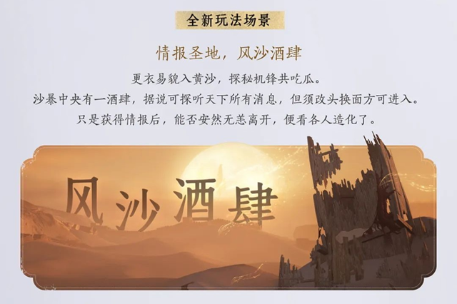 新版本将解锁多个全新玩法与探索场景,其中“风沙酒肆”作为情报圣地,隐藏在沙暴中心,玩家需更衣易貌方可进入,并在其中打探各类江湖情报。而全新门规玩法“孤云现世”将带来观星解谜体验,让玩家通过星象推演探寻世间奥秘。此外,鬼市新增“牛头马面,赌生骗死”玩法,在此,玩家可参与高风险的对赌,生死胜负只在一念之间。
