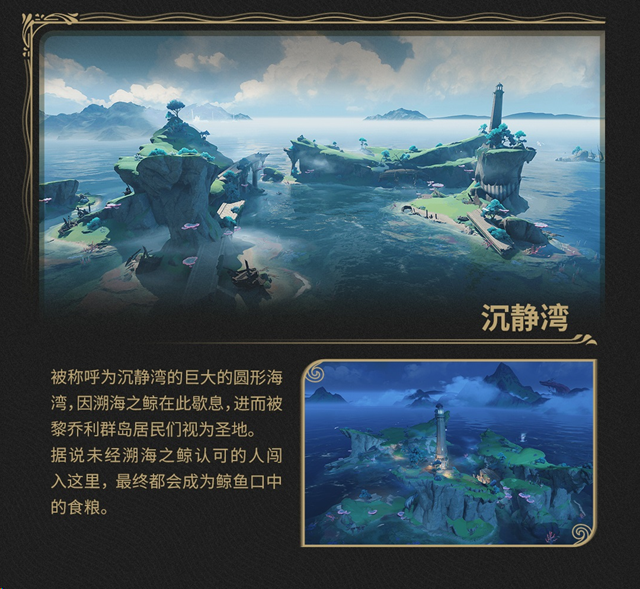 3.沉静湾:被奉为圣地的巨大圆形海湾,传说中溯海之鲸会在此休憩,未经其认可的人进入此地将有危险。
