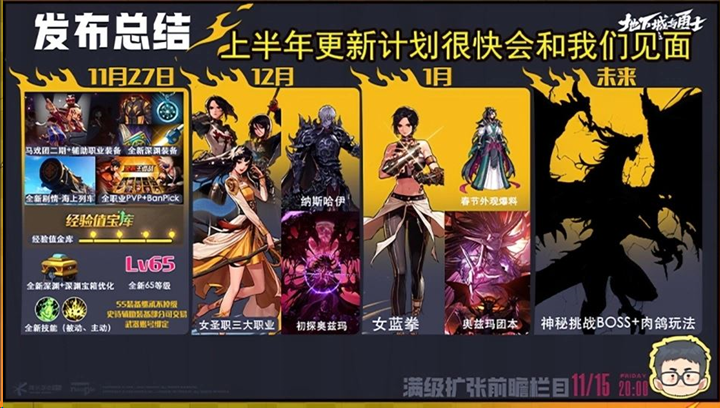 回顾去年11月份的发布会爆料,我们得知策划团队只公布了从11月27日至1月份的内容,而对于未来的规划,则仅透露了神秘挑战BOSS和肉鸽玩法的存在。这意味着上半年的“更新计划”即将浮出水面,策划团队可能会通过发布会的形式向玩家展示更多新内容。那么,在即将到来的发布会中,我们可以期待哪些具体的变化呢?