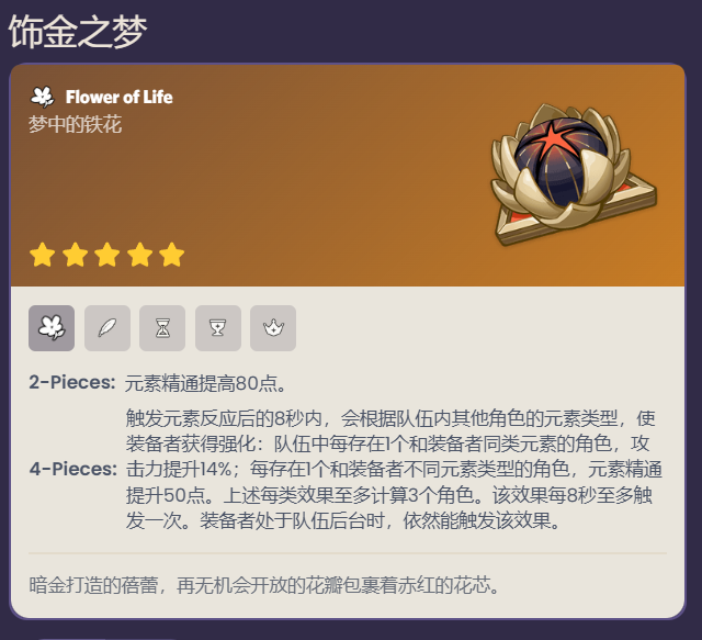 主词条选择:时之沙(元素精通或充能),空之杯(元素精通),理之冠(元素精通)