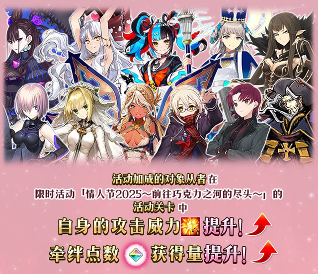 亲爱的御主们,准备好迎接甜蜜与微苦交织的情人节之旅了吗?《Fate/Grand Order》(简称《FGO》)国服即将推出特别活动——【情人节2025~前往巧克力之河的尽头~】。让我们一同揭开这个充满魔法与惊喜的故事序幕!