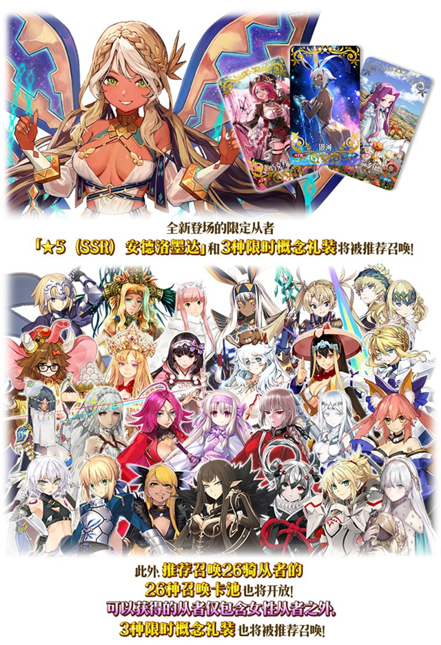 不仅如此,「★5(SSR)塞弥拉弥斯」也将作为推荐召唤限定从者登场。此外,25种召唤卡池将在活动时间内替换开放,所有召唤卡池仅包含女性从者,为玩家们带来一场女性从者的盛宴!