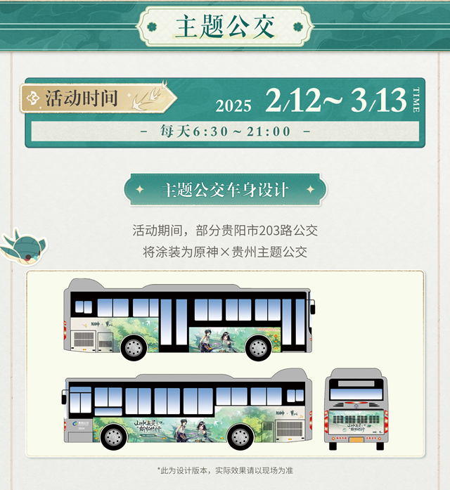 - 车身设计:在活动期间,贵阳市的部分203路公交车将被特别涂装成原神与贵州的主题外观,为乘客提供一段别样的旅程体验。