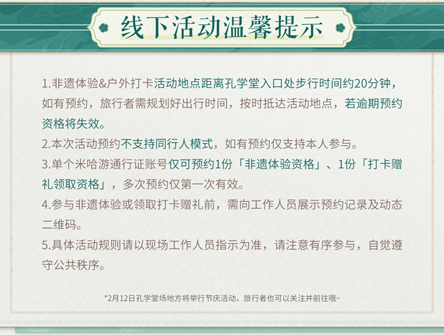 此外,2月12日在孔学堂场地还将举办一场节庆活动,欢迎各位旅行者前来参加,共同庆祝这一特别的日子!
