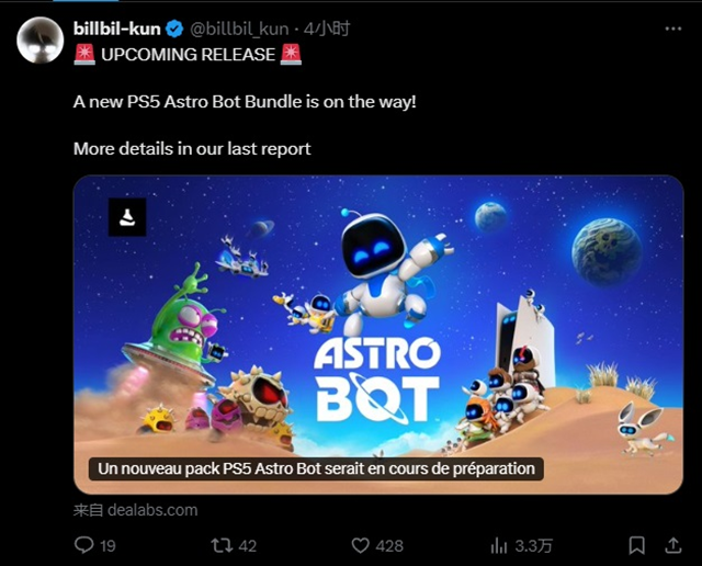 据知名爆料人、Dealabs作家billbil-kun透露,索尼正准备在北美和欧洲发布一款新的PS5硬件套装。该套装将包括一台标准版PS5游戏机(含光驱)以及一个Astro Bot《太空机器人》游戏的下载码。不过,此套装预计不会包含特别版的Astro Bot DualSense控制器。