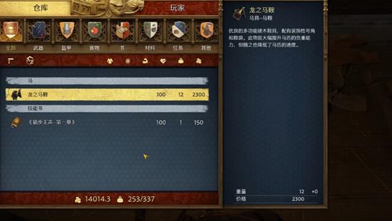 在游戏的第一张地图中,主线任务的赛马奖品中也包含一个+200负重的马鞍,这是前期获取高负重马鞍的一个不错的选择。