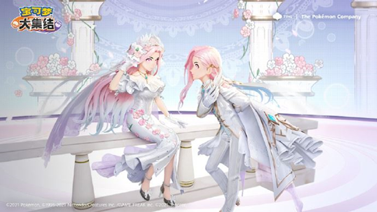 当训练家穿上全套誓约套装,还可获得专属动作和专属拖尾效果,举手投足尽显优雅,定格浪漫瞬间。