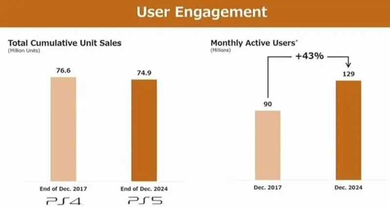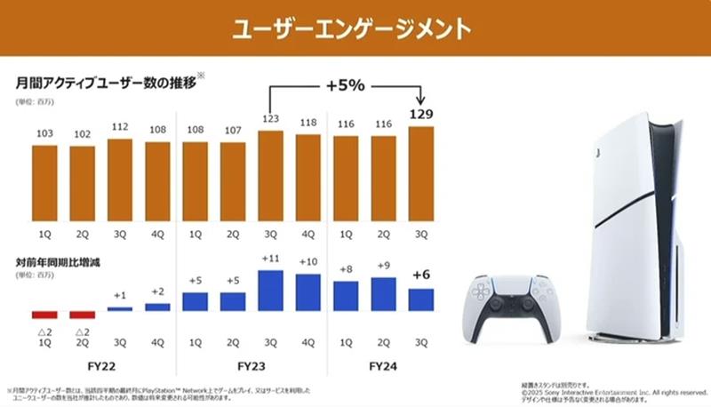 PSN月活跃用户创新高:截至2024年12月31日,PlayStation Network(PSN)的月活跃用户数量达到了1.29亿,较上一财年同期的1.23亿增加了600万。