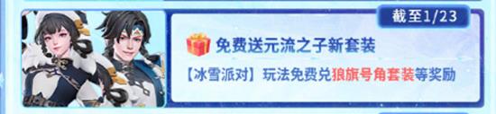 活动内容:通过冰雪派对玩法,可以免费兑换【元流之子-狼旗号角】套装,让你在冰雪世界中更加耀眼!
