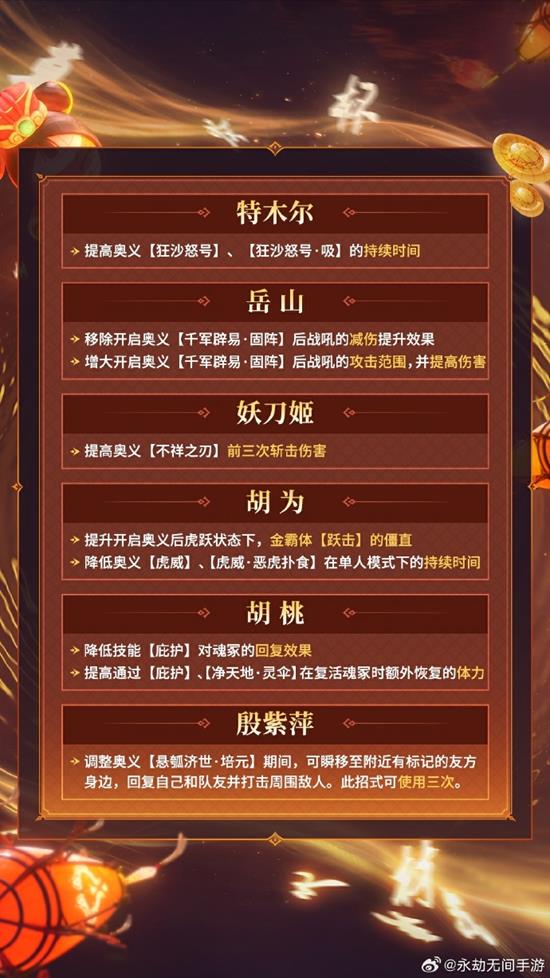 岳山:移除开启奥义【千军辟易·固阵】后战吼的减伤提升效果,增大开启奥义【千军辟易·固阵】后战吼的攻击范围,并提高伤害。