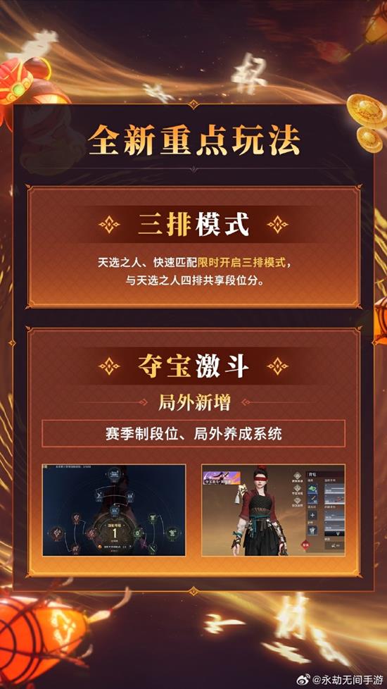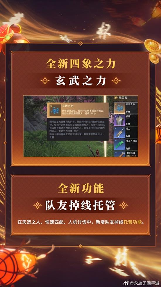 《永劫无间手游》迎来了一系列重大更新,带来了全新的玩法和功能,为玩家提供了更丰富的游戏体验。以下是本次更新的详细内容: