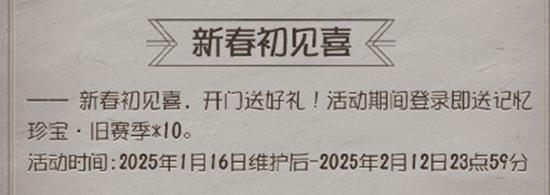 活动时间:2025年1月16日维护后-2025年2月12日23点59分