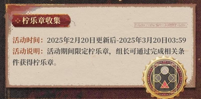- 活动说明:活动期间限定柠乐章,组长可通过完成相关条件获得柠乐章。
