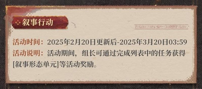 - 活动说明:活动期间,组长可通过完成书中的任务获取【叙事形态单元】等活动奖励。