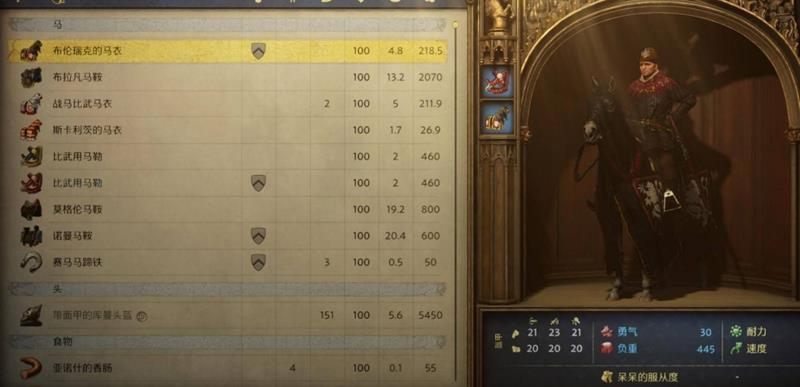 马匹:选择外观和性能兼顾的马具,提升移动速度和耐力。
