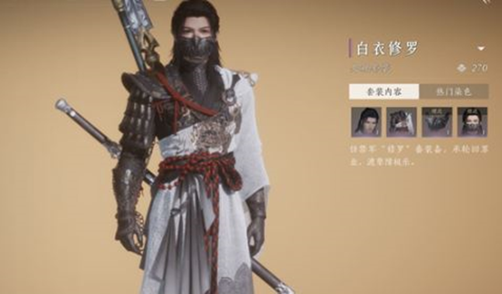 2月14日更新后,游侠即可前往「商店」,以1280「长鸣珠」购得全新套装【白衣修罗】。