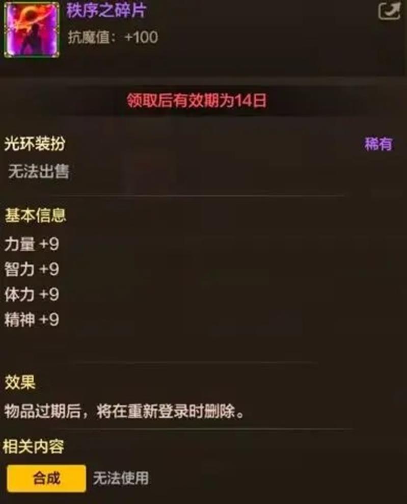 前1%~5%: 秩序之碎片(限时14天光环)
