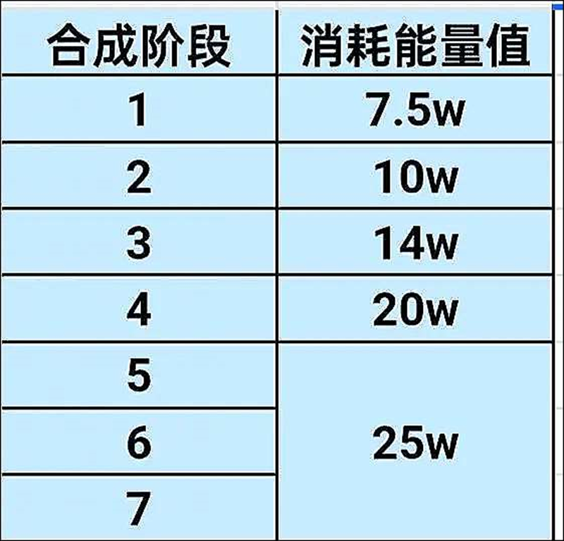 合成阶段能量值消耗: