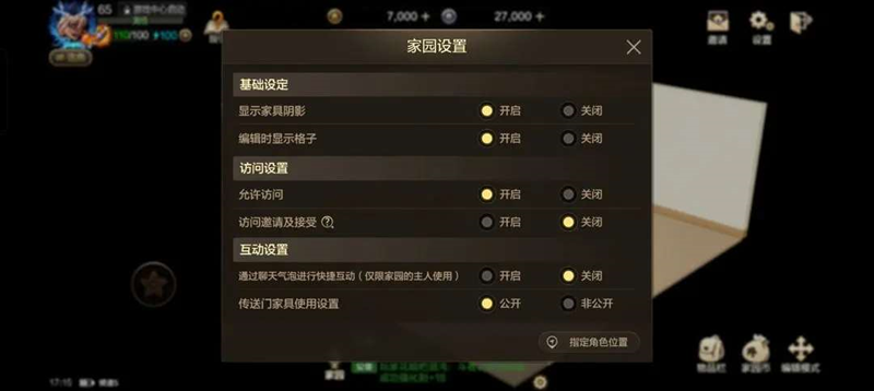 同时,也可以通过设置,选择自己家园的基础设定、访问权限和互动情况。